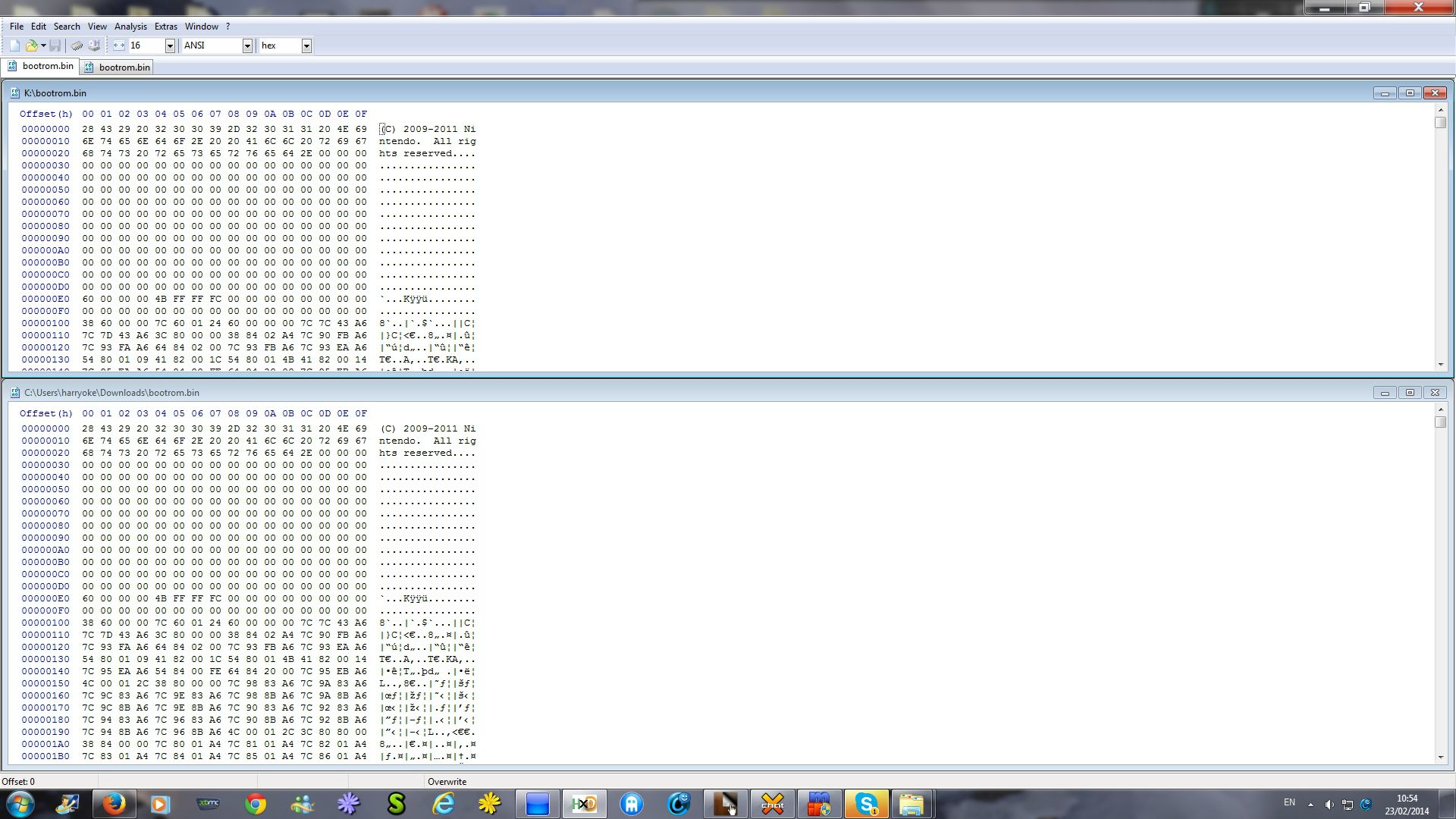 ダンプデータの容量は16,384バイト。ダンプデータであるBootrom.binをHEXエディタで開いた時のスクリーンショットも公開されています。データは暗号化されていないようです。