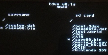 ツイッターで、smea氏がニンテンドー3DSのセーブデータを管理するためのものと思われるtdvsという名称のHomebrewの起動画面写真を公開していました。