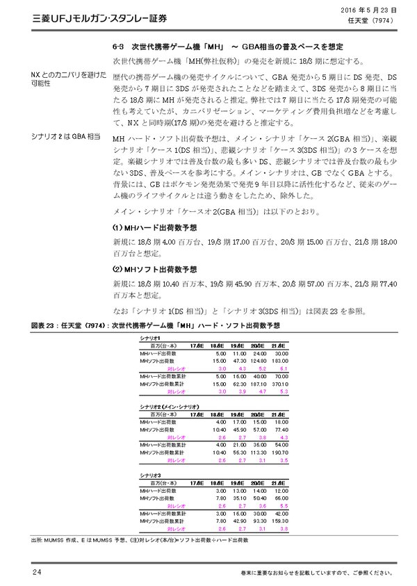 Mitsubishi UFJ Morgan Stanley's research "Nintendo NX and MH" pic.twitter.com/BYlipciPDt