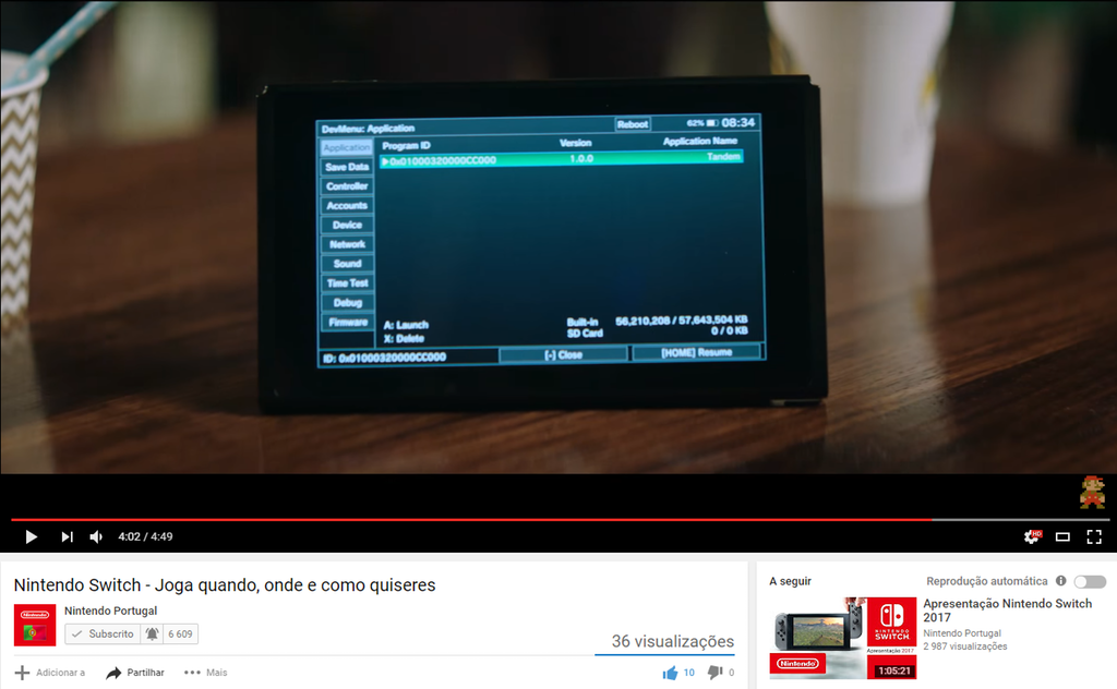 Switch Developer Menuなるものが映っていたのはSwitch Super Bowlのコマーシャル用ビデオで、ポルトガル任天堂がYouTubeにアップしていましたが本来ならゲーム画面を編集で入れるべきところを編集前の状態で誤ってアップしてしまったと考えられます。